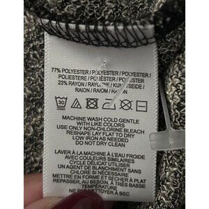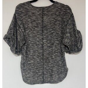 Soft and lightweight with scoop neck, cuffed sleeves and rounded hemline. EUC with no flaws.