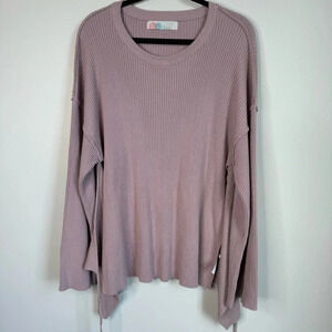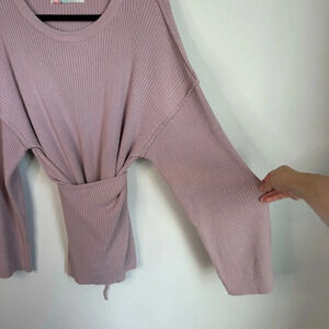 Free People Beach Purple Tie Wrap Ribbed Wide Sleeve Oversized Sweater