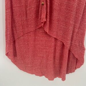 Free People Beach Ribbed Up button front long cardigan. Hi low hem. Pink coral colorway.