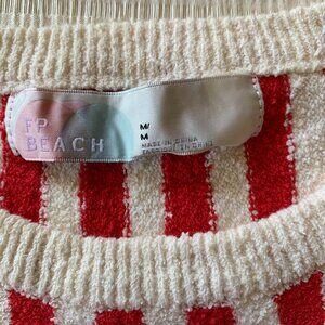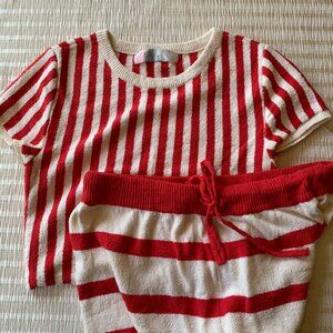 Free People Beach Roberta Sweater Set Stripe M Comfy Pull On Pants Top Red White