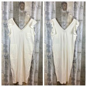 Free People Beach Ruffle Sleeve Oversized Maxi Dress in Cream Size Large.