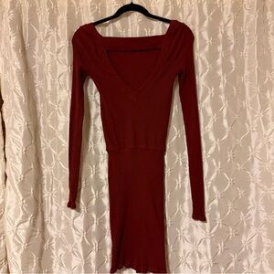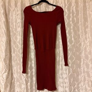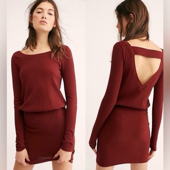 Free People Beach Rustic Red On The Rooftop Long Sleeve Mini Dress Burgundy