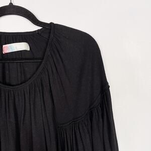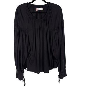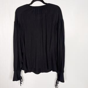 Free People Small S Black Pullover Top Balloon Sleeves Flowy Long Tie Sleeves