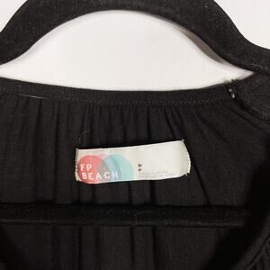 Free People Beach S Black Pullover Top Balloon Sleeves Flowy Long Tie Cuff Linen
