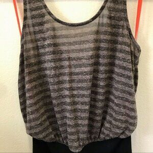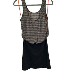 Free People Beach Scoop-Back Striped Sheer Blouson Tank Black Mini Dress Size S