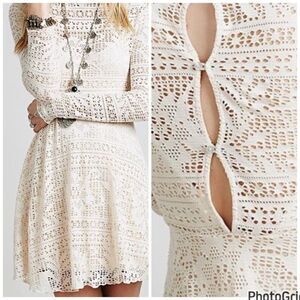 Free People Beach Spring Date Crochet Knit Dress in Pink Mauve | SZ XS