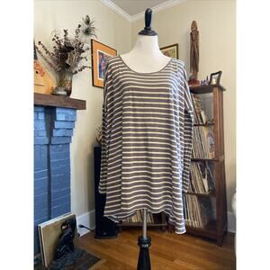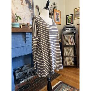Free People Beach Two Body Corps Deux Striped Oversized Tunic Top Long Sleeve OS