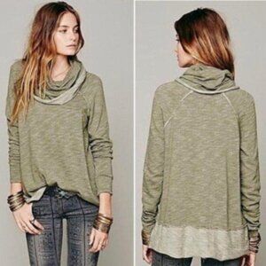 Free People Beach Two Body Green Cowl Neck Cocoon Pullover Top M/L