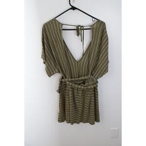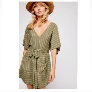 Free People Beach Woman's XS Beach Paradise Striped Mini Dress Green Open Back