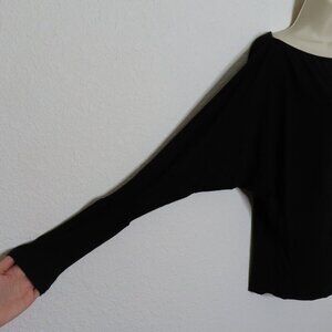 Free People Beach Womens Small Solid Black Wide Boat Neck Pullover Shirt Top