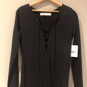 Great coverup for a day at the beach and then transitions to dinner out, raw edge hem, laces up at front for a very sexy look!