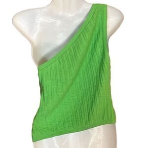 Free People Beach Mary one shoulder sweater. Classic ribbing on this linen blend bright green beachy top. Pit to pit 17" Shoulder to bottom front hem 18" Size Small NWT