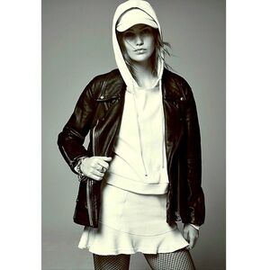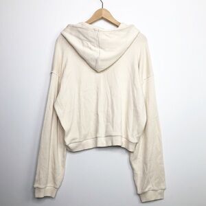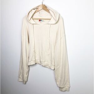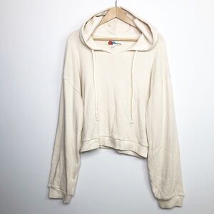 Free people, beach, two piece, social set, in cream, oversize hoodie with skirt with pockets and peplum hem hoodie is oversized skirt has elastic stretch waist.