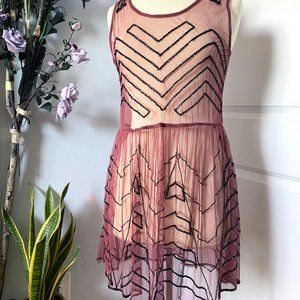 Gorgeous Burgundy Wine color mesh dress with black geometric bead details from Free People!