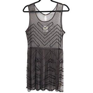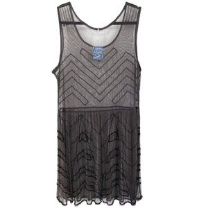 Free People Beaded Sheer Mesh Dress Womens M Black Glam Edgy Dramatic Gatsby NWT
