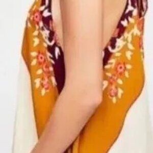 Beautiful floral Free People tunic/tank/mini dress! Deep v neckline and key hole front Adjustable tie at the back neck Flows nicely when on very comfortable. Please see photos has light stains on the back side, hence the price.