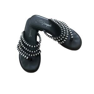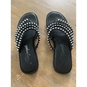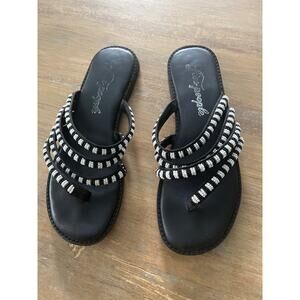 Free People Beatrice Beaded Flat Sandals in black and white size 37