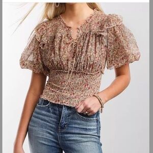 Free People Beatrice Lace Up Smocked Waist Floral Top Size Large