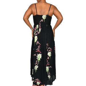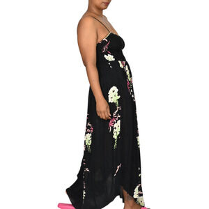 Free People Beau Midi Dress Black Floral Gauzy Smock Slip Sweetheart Sundress XS