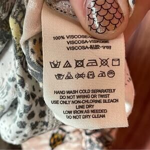 Item in Excellent Used Condition. This dress is beyond beautiful, lots going on, scoop neck with long tie, bishop sleeves with ties at each wrist, crisscross accent material at shoulders for a soft, pretty “wing” effect, oversized, raw hem. Pictures do not do this justice! PLEASE SEE ALL PHOTOS. Measurements taken laying flat: