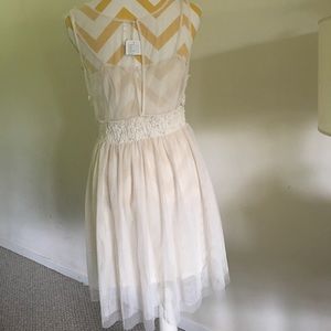 Free people dress, gorgeous Crochet Applique dress. Sheer mesh tank w/ removable slip underneath. Stretchy crochet banding at the back of waist for easy fit and wear., at back w/ clasp by the neck. . Was 128$ Sz med. nylon, hand wash. Firm on price, no trades, thank you❤️🌺‼️ The lease on this is so stunning and made so well. New 💙