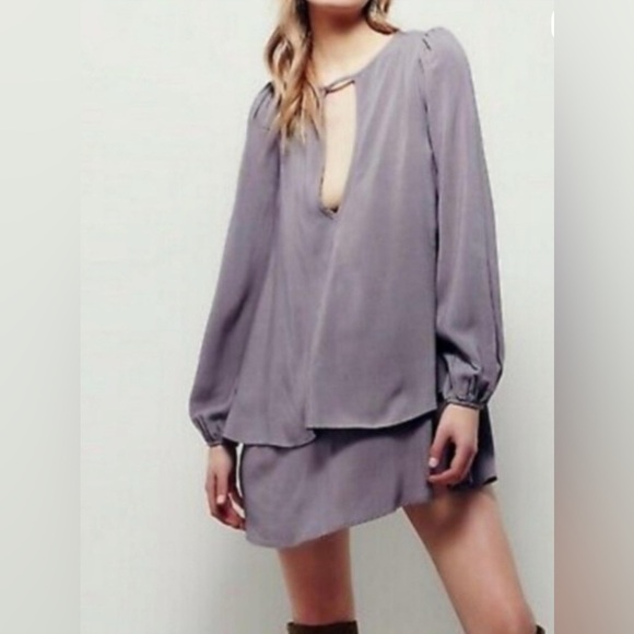 Free People Beck Dress | Size XS | Purple Grey Boho Cut-Out Long Sleeve Mini