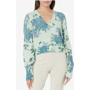 This gorgeous floral print sweater will brighten those chilly months. It comes in the pastel green combo, which is accented by lovely purple and blue in the florals. It is a classic v-neck. It is a little bit cropped; it is not a dramatic crop, but please note it is cropped. There are subtle gray stripes in the design. Perfect for layering. New with tags.