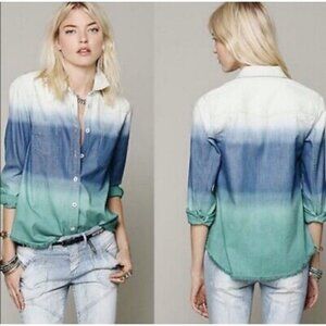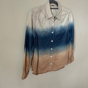 Free People Before Sunrise Ombre Raw Hem Denim Button Down Shirt Women's Small