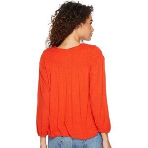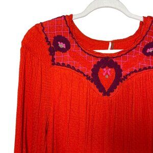 Free People Begonia Embroidered Top Size Small Red Orange Long Sleeve Boho
