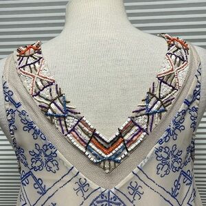 Free People Beige Ancient Mystery Beaded Sequin Sleeveless Shift Dress, lined. Lingerie in the back. V-neck and back.