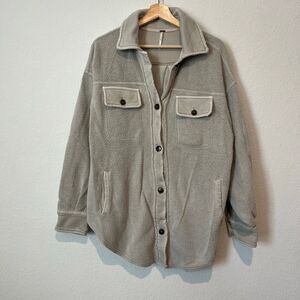 Free People Beige Gray Fleece Oversized Button Down Ruby Jacket Women's Size XS