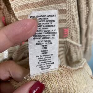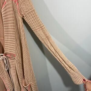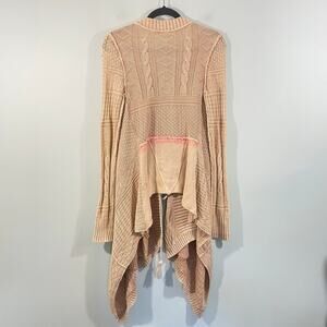 Free People Beige Pink All Washed Out Asymmetrical Chunky Boho Cardigan Size XS