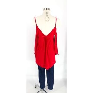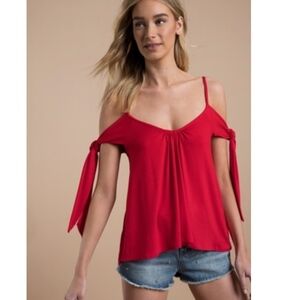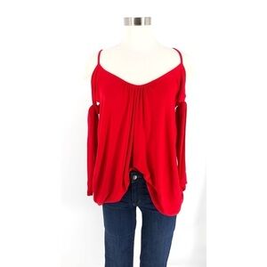 Free People Believe Me Cold Shoulder Top. NWT. Soft stretch knit fabrication gives amazing draped to this top. Skinny shoulder straps and tying off the shoulder sleeves add to the look. Relaxed bodice with slight hi-low silhouette.