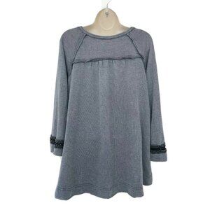 Free People Bell Crochet Gray High Low Sweatshirt Womens Size XS Oversized