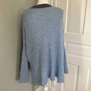 Free People Bell Sleeve Open Knit Blue Gray Sweater Long Oversize size Small