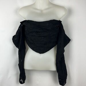 Free People Bella Black Corset Cropped Off Shoulder Top Size M