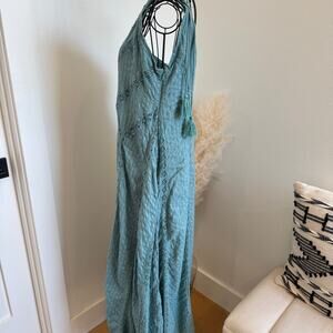 Free People Bella Boho Tie One Shoulder Cotton Maxi Dress Lace Mint Green Small