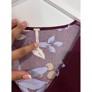 Free People Bella Floral Bell Sleeve Tunic Maroon Print V-Neck Blouse Size XS