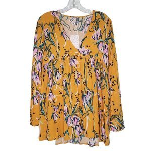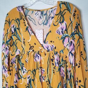 Free People Bella Floral Print Tunic Top In Yellow Size XS NEW Flowy Boho