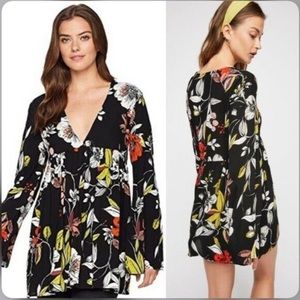 Free People Bella Floral Print V Neck Bell Sleeve Tunic Top Dress XS