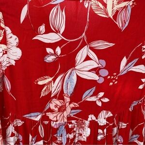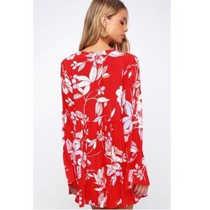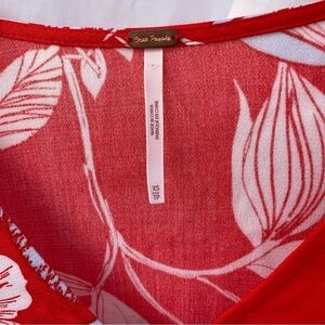 Free People Bella Red Floral Print Bohemian Flowy Tropical Tunic