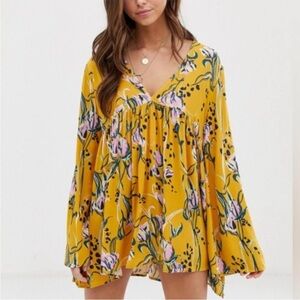 Free People Bella Tunic in Golden Floral Print in excellent used condition. No signs of wear.