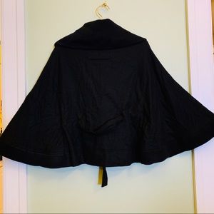By Free People This Bohemian Chic Cape style Coat is crafted from a 47% wool blend, soft and super warm material, ribbed collar and hem, soft striped lining throughout and in sleeves, ribbed hem cape like sleeves, the front snaps a hidden placket, Black Edgy yet retro Hippie style, this is a unique Jacket that will definitely keep u cozy!