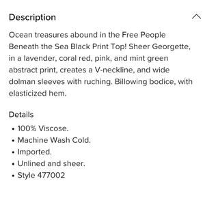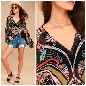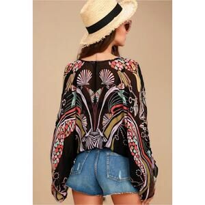 Free People Beneath the Sea Boho Black Print Crop Top sz M