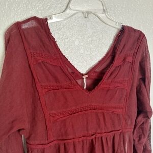 Free People Berlin Mini Dress Burgundy Rust Gauze sz Xs