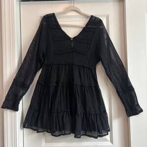 Free People Berlin Sheer Mini Dress Black Sz SP Whimsygoth Boho Fesitval