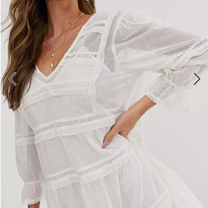 Free People Berlin Tiered Embroidered Mini Dress, White, Size XS