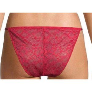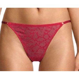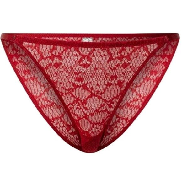 So sultry high-rise undies featured in a skimpy, bikini-cut silhouette with skinny side straps and a gorgeous sheer lace design.