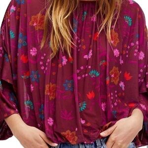 Free People Berry Wildflower Honey Boho Blouse Puffy Sleeves Girly Romantic Top