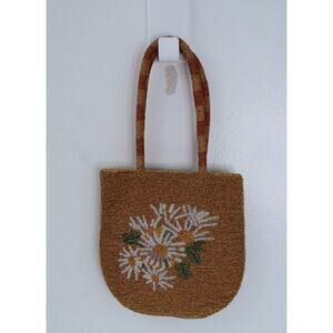 Free People Best Bet Beaded Floral Tote Handbag Boho Womens Golden. In very good shape! A few missing beads on the handle.